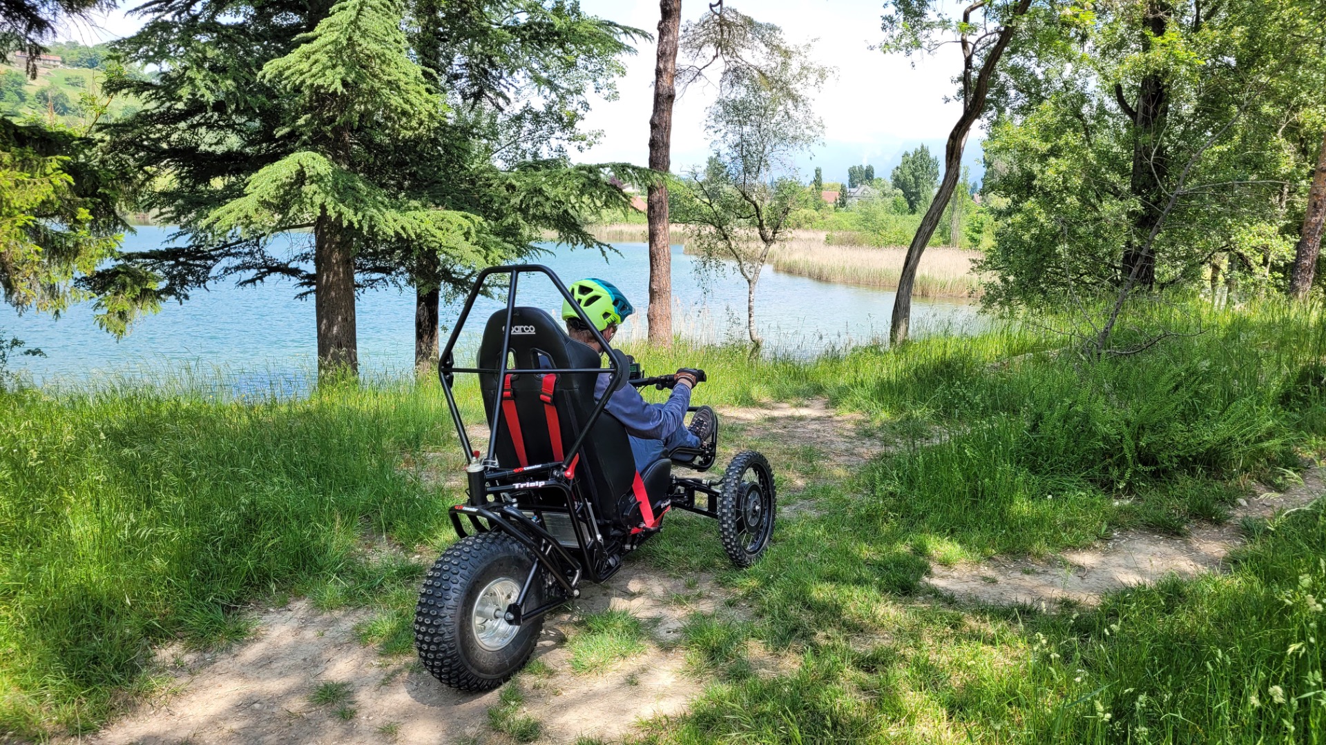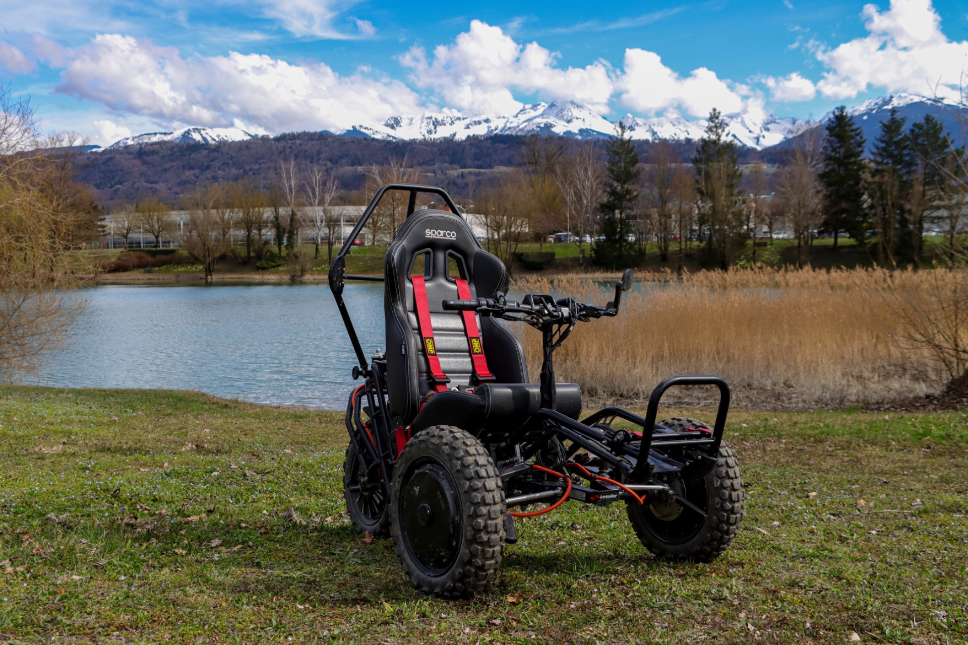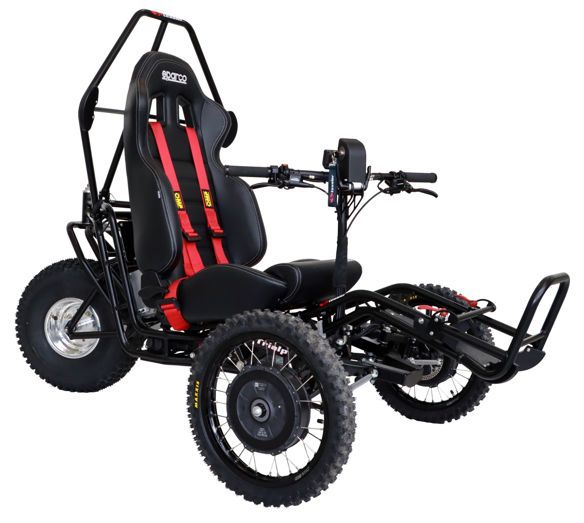 C'est un fauteuil de randonnée électrique avec des roues avant rétractables, idéal pour les chemins étroits. Il a une excellente capacité de franchissement, similaire au Cimgo, grâce à ses 3 roues motrices. Le petit plus se trouve dans la possibilité de rétracter ses roues avant afin de pouvoir se faufiler dans de plus petits espaces!!